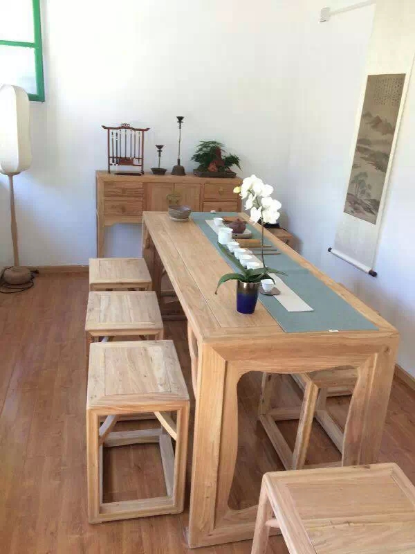 这是村里座落在普通民居中间的一处小院落,从外面看,与其他的院落没有任何不同,走进去,才发现其中别有洞天,正房里,几十个蒲团与榆木小几案变成了教室里的座位;旁边还有一间摆满了一整面墙书籍的阅读室;西厢一间静谧的茶室陈设着朴素而优雅的茶席,一只大瓮里插着原生态的枯枝与墙上的古画相映成趣。
