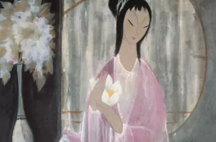 传统侍女情调与表现主义的温柔嫁接,形态婀娜清秀,亦线亦色,亦实亦虚,亦刚亦柔,既有马蒂斯、莫迪里阿尼的形态夸张意味,也有莫高窟飞天的飘飘欲仙的神韵。