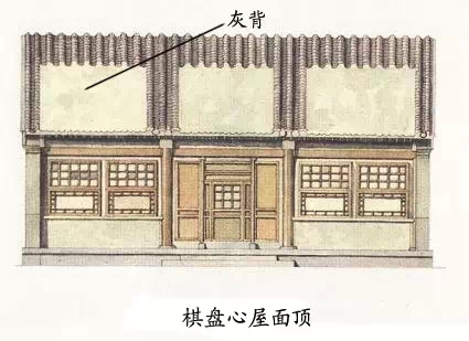 棋盘心屋顶 是将屋面的中间部分做成灰背或石板瓦形式,这一部分所占屋面面积相对比铺瓦面积大,并且位置略为偏下。因为这样的屋面整个看起来就像是一个个的棋盘,所以得名“棋盘心”。