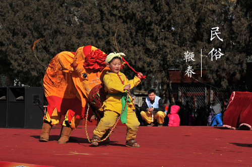 “鞭春”俗称“打春牛”,过去的人们在立春这天要折一根柳条,来抽打牛背,让牛在春耕时更卖力,象征着人们鞭策自己要更加上进。后来许多人家还用柳条来轻轻抽打孩子,希望孩子在新的一年能更加上进,力争上游。现在,城里已不再举行鞭春活动,一些农村会用泥塑一头牛,称为春牛。妇女们抱小孩绕春牛转三圈,旧说可以不患症病。当日,村里再推选一位老者,用鞭子象征性地打春牛三下,意味着一年的农事开始,然后众村民将泥牛打烂,分土而回,洒在各自的农田。